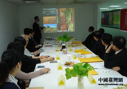 臺灣鏡群國際規劃設計顧問有限公司工作人員向撫順市委副書記喻國偉一行介紹公司現在農業項目開展情況時的情景。(圖片來源:撫順市臺辦)