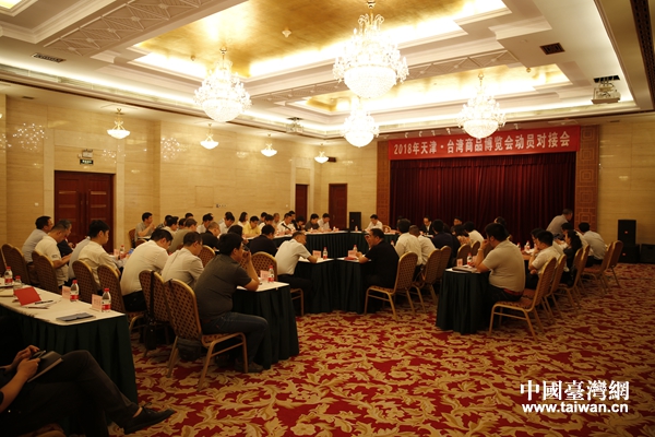 2018年天津·臺灣商品博覽會動員對接會現場。(圖片來源:天津市臺辦)