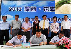 25日,廣西與臺灣花蓮農產品貿易對接會暨啟運儀式在花蓮農業職業技術學校舉行。25日,廣西政協主席陳際瓦在臺灣花蓮出席廣西與花蓮農業合作交流,見證兩地多個蔬果產銷班簽署對口交流備忘錄。