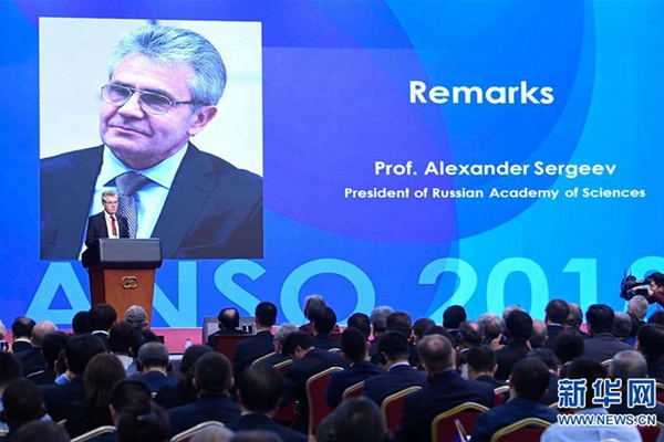 11月4日,“一帶一路”國際科學組織聯(lián)盟成立大會暨第二屆“一帶一路”科技創(chuàng)新國際研討會在北京召開,與會嘉賓在會上致辭。 記者申宏攝