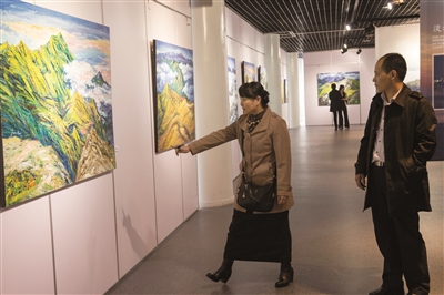 10日,由天津空港經(jīng)濟(jì)區(qū)社會發(fā)展局、空港經(jīng)濟(jì)區(qū)文化中心主辦,“登峰造極2015郭少宗臺灣百岳油畫展”在空港文化中心綜合展廳展出。據(jù)了解,此次活動共展出45件藝術(shù)家郭少宗的油畫“臺灣百岳”系列作品。本次展覽對公眾免費(fèi)開放,展期為一個月,為普通百姓提供更多接近藝術(shù)和了解藝術(shù)的機(jī)會。圖為市民觀展。(記者 宏旭 文 周偉 攝)