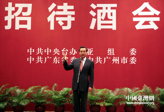 11月11日,中共中央臺辦與廣州亞運會組委會、廣東省委、廣州市委共同舉辦招待酒會,歡迎前來出席廣州亞運會開幕式的臺灣各界嘉賓。圖為中共中央臺辦王毅主任在招待酒會上致辭。(中國臺灣網 鐘寶華 攝)