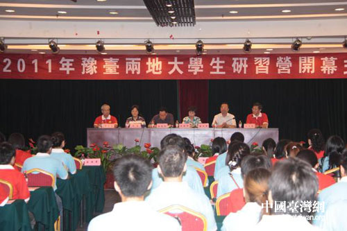 7月15日,由河南省臺辦、省臺聯主辦,以“走進天地之中、探尋‘四大古都’”為主題的2011年豫臺兩地大學生研習營在鄭州舉行開營儀式。河南省臺辦主任宋麗萍宣布“2011年豫臺兩地大學生研習營正式開營”并向營員授營旗。來自臺灣長榮大學、嘉義大學和華北水利水電學院的師生百余人參加開營儀式。