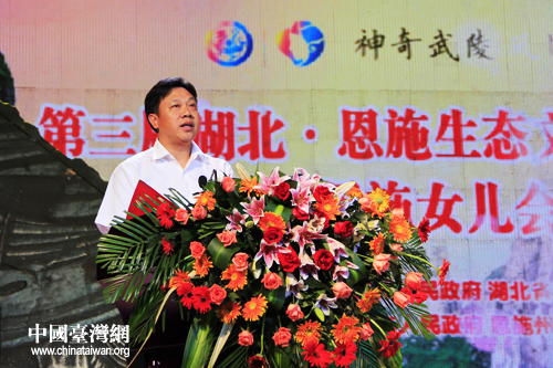 恩施州委書記、州人大常委會(huì)主任肖旭明致辭。(中國臺(tái)灣網(wǎng) 楊麗 攝)