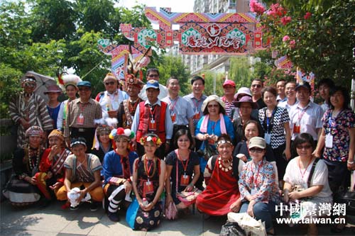 臺灣少數民族參訪團在恩施女兒會游園相親活動上合影(中國臺灣網 雍紫薇 攝)