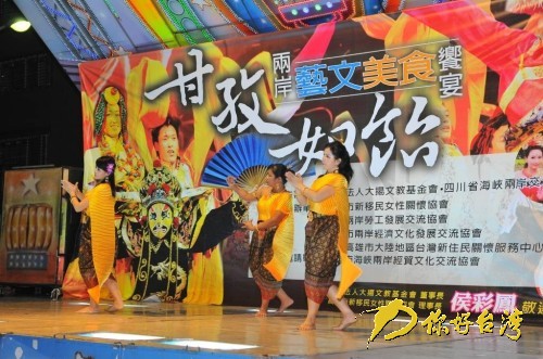 本場演出除了四川民族歌舞團帶去的節目之外,臺灣同胞也上臺進行了聲樂演奏、舞蹈等表演,兩岸同胞同樂。而演出場地一圈,還有數十個臺灣美食大排檔,當地市民除了可以欣賞文藝表演,也還可以品嘗到當地美食。