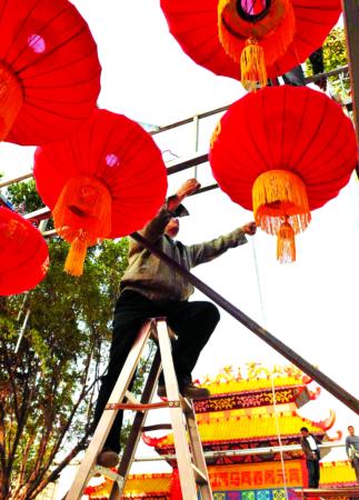 在4.8萬平方米的兩馬元宵燈區(qū),依順時針分為民俗風情、和諧海峽、盛世中華、歡樂新年四個主燈區(qū)。記者看到,最先點亮的是馬祖主題燈區(qū)和燈區(qū)門口的民俗燈組“親家舅送燈”。