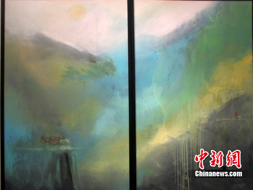在浙江西子博物館記者見到了陳歡先生,他打趣地說,在臺灣別人都說他是“臺灣的吳冠中”,“我的畫有一種東方的禪意。”陳歡說,他采用的是當代結合傳統水墨畫的意境,而且擺脫了純種稠密的油彩,用一種輕薄的手法自由地盡情流動于畫面之上。