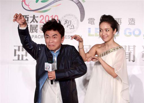 亞太影展頒獎典禮主持人吳宗憲、侯佩岑亮相,兩人一上臺就開始搞笑。 圖片來源:臺灣“今日新聞網”