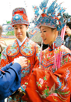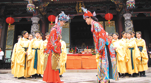中國臺灣網12月25日消息 據臺灣《聯合報》報道,臺北市孔廟昨天破天荒舉行儒家婚禮,在臺灣民政部門負責人黃呂錦茹主證婚下,曾在孔廟擔任禮生的日本籍新郎水口拓壽,迎娶臺灣美嬌娘簡秀文。未來孔廟也將以此為藍本,開放民眾申請儒家婚禮。