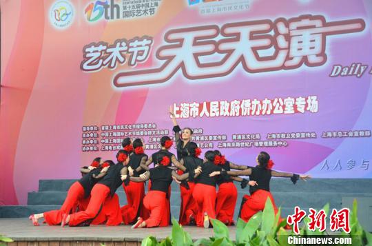 圖為丹中文化藝術團在上海國際藝術節“天天演”舞臺上表演《今夜無眠》。 張珂 攝