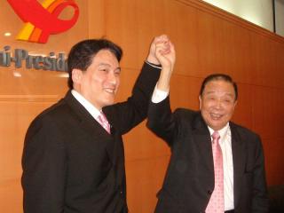 統一企業董事長高清愿(右)12日請辭董事長職務,改由總經理羅智先(左)接任。來源:臺灣“中央社”