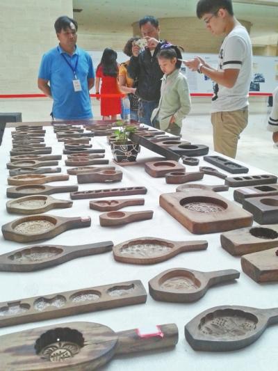 “這些月餅模子是一個月前從民間征集來的,可以讓更多人了解我們的中秋文化。”活動主辦方負責人介紹說,模子的材質主要是木質,還有一個是陶制的,年代從清代、民國到近現代不等。
