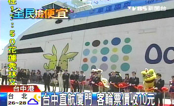 臺中直航廈門,首航促銷船票只要10元新臺幣。(圖片來源:臺灣TVBS電視臺)