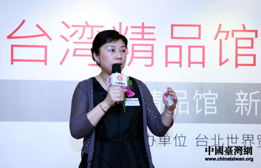 臺(tái)北世界貿(mào)易中心營(yíng)銷項(xiàng)目處處長(zhǎng)、“臺(tái)灣精品館”館長(zhǎng)李惠玲在新聞發(fā)布會(huì)上致辭。(中國(guó)臺(tái)灣網(wǎng) 鐘寶華 攝)