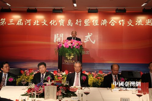 中國臺灣網6月13日臺北消息 以“交流合作、共創雙贏”為主題的第三屆河北文化寶島行暨經濟合作交流周,昨晚在臺北世貿中心舉行了隆重的開幕儀式。中國國民黨榮譽主席吳伯雄,河北省委常委、組織部部長梁濱等兩岸嘉賓出席并致辭。