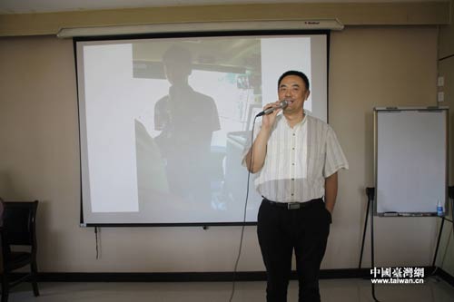 海峽經濟科技合作中心副主任蕭毅評價參訪團表演。(中國臺灣網 梁行 攝)