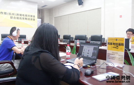兩岸電商企業通過視頻連線進行實時互聯洽談相結合。(中國臺灣網 吳曉寒 攝)