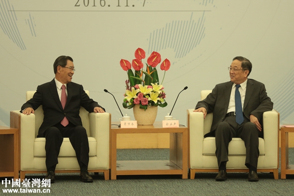中國(guó)臺(tái)灣網(wǎng)11月7日廈門(mén)訊(記者 扶海濤)7日下午,中共中央政治局常委、全國(guó)政協(xié)主席俞正聲在廈門(mén)會(huì)見(jiàn)前來(lái)參加2016兩岸企業(yè)家峰會(huì)年會(huì)的臺(tái)灣方面理事長(zhǎng)蕭萬(wàn)長(zhǎng)。