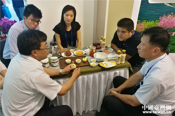 農交會期間,各臺創園的臺農與農業部相關部門負責人在臺灣展區溝通交流。(中國臺灣網 郜利敏 攝)