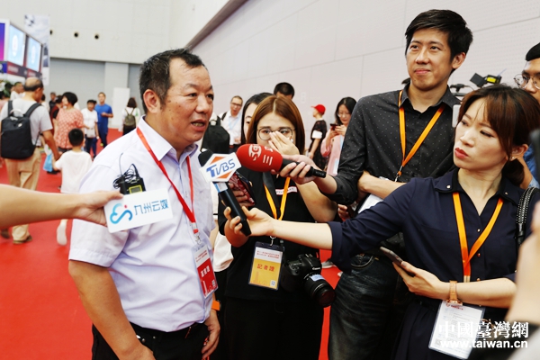 臺商蔡佳欣與他的產品。(中國臺灣網 趙苗青 攝)