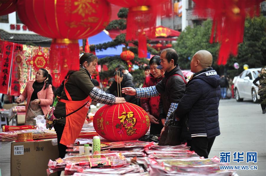 2月13日,市民在貴州黃平縣舊州古鎮(zhèn)選購(gòu)紅燈籠。春節(jié)將至,各地紅紅火火,一派喜氣景象。 新華社發(fā)(王永龍 攝)
