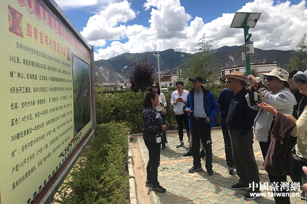四季吉祥村第一書記索朗央吉向到訪的海內(nèi)外媒體團(tuán)介紹新村建設(shè)發(fā)展情況。(中國(guó)臺(tái)灣網(wǎng) 普燕 攝)