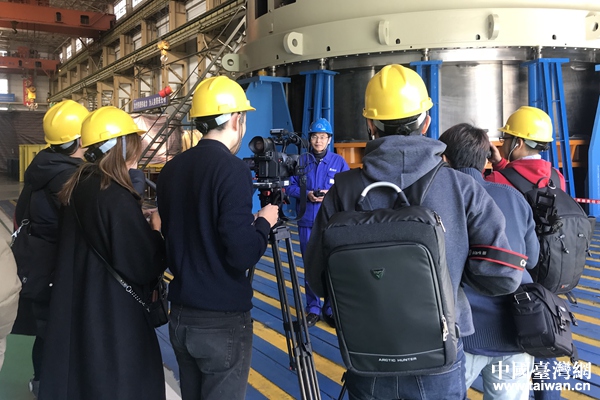 兩岸媒體人在哈爾濱電機廠采訪相關負責人。(中國臺灣網 張亞靜 攝)