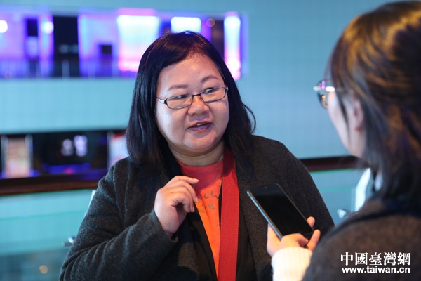 《臺灣導報》記者蔡淑娟接受采訪。(中國臺灣網 李奕均 攝)