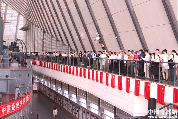 兩岸嘉賓參觀中山艦史跡陳列。(中國臺灣網 盧佳靜 攝)