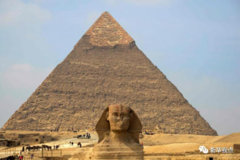 2018年2月15日在埃及首都開羅郊區拍攝的海夫拉金字塔和獅身人面像。新華社發