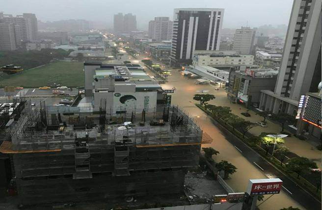 高雄市澄清路淹水變黃河,空拍照怵目驚心(圖片來自臺媒)