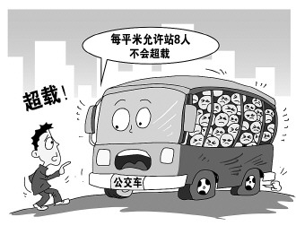 根據1987年國家頒布的《機動車安全運行技術條件》,公交車每平方米允許站8人。這個標準在25年前實施效果如何不得而知,但依照今天人們的普遍身材來看,可謂是望塵莫及。曾有人做過實驗,在平地上畫個1平方米的正方形,讓8位有胖有瘦的男女站進去,彼此相互抱團才勉強站立。而在公交車上,乘客往往都是大包小包,又不可能親密無“間”,肯定有人被自然擠出圈外,因此公交車再擠也不會超載。