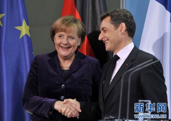 資料圖片:1月9日,德國總理默克爾(左)和法國總統(tǒng)薩科齊在柏林出席新聞發(fā)布會。 新華社記者馬寧攝