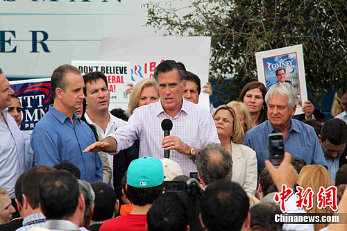 當(dāng)?shù)貢r(shí)間1月29日,美國(guó)共和黨總統(tǒng)參選人、前馬薩諸塞州州長(zhǎng)羅姆尼在佛羅里達(dá)邁阿密郊外舉行盛大造勢(shì)活動(dòng),展開(kāi)選戰(zhàn)“沖刺”,吸引大批支持者前來(lái)助威。中新社記者李洋 攝