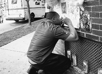 在19日至20日不到24小時的時間內,芝加哥發生數起槍擊案,導致至少3人死亡,約30人受傷。圖為9月20日,在美國芝加哥,25歲的槍擊案遇難者魯賓·奧斯汀的朋友在案發地點寫下悼念詞。新華社發