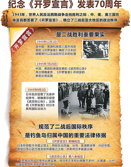 70年過去了,紀念《開羅宣言》的現(xiàn)實意義一點都不小于歷史意義。《開羅宣言》不僅像一塊“鎮(zhèn)妖石”壓在日本軍國主義者身上和心上,而且像一面高懸在日本面前的“照妖鏡”。