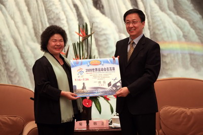 去年5月23日下午4時,上海市長韓正在上海興國賓館會見了高雄市長陳菊及高雄世運觀光行銷團一行。雙方就各自的城市特色、環保旅游資源、市政建設規劃等民生管理經驗交流了看法。當時,陳菊表示,歡迎上海的市民朋友到臺灣,到高雄觀光旅游,陳菊也預祝上海世博會成功。