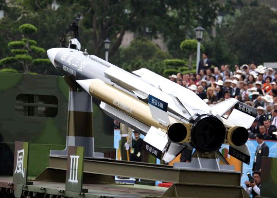 美國《防務新聞》網站2007年10月11日報道臺灣在10月10日的閱兵式上展示了兩種自行研制的導彈,希望以此提醒大陸臺灣有足夠的力量保衛自己。