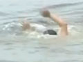 青島:海上驚魂 三米巨浪掀翻拍照女子