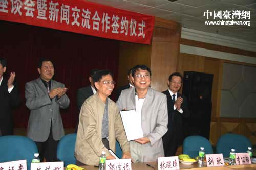 海南省新聞工作者協(xié)會副主席兼秘書長郭澤福與臺南縣記者協(xié)會理事林琨璋(右二)