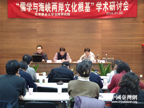 北京聯(lián)合大學(xué)臺灣研究院主辦“儒學(xué)與海峽兩岸文化根基”學(xué)術(shù)研討會,目的是兩岸專家學(xué)者一起研討儒學(xué)與兩岸文化發(fā)展關(guān)系問題,弘揚(yáng)儒學(xué)等中華文化傳統(tǒng)精華以鞏固兩岸文化根基,用儒學(xué)力量凝聚兩岸同胞,增進(jìn)兩岸文化共識和凝聚力,促進(jìn)兩岸文化的發(fā)展。來自海峽兩岸的30多位知名專家學(xué)者參加了這次為期兩天的學(xué)術(shù)交流活動,會議宣讀和交流了23篇優(yōu)秀學(xué)術(shù)論文。