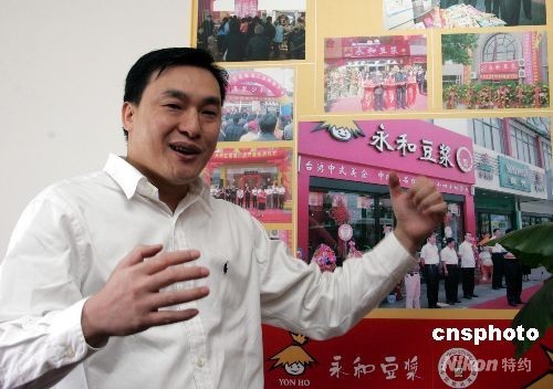 上海臺(tái)商林建雄近日接受本社記者專訪,講述去年,任中國(guó)國(guó)務(wù)院副總理的“鐵娘子”吳儀,從批評(píng)永和豆?jié){,到后來(lái)還臺(tái)商公道的曲折故事。據(jù)介紹,去年九月末,吳儀考察上海松江區(qū),隨意進(jìn)入一家掛有臺(tái)商“永和豆?jié){”招牌的小吃店,驚訝其衛(wèi)生狀況之差,馬上嚴(yán)厲點(diǎn)名批評(píng)。對(duì)此,投資大陸十多年、運(yùn)營(yíng)有二百多家永和豆?jié){連鎖店的臺(tái)資弘奇永和公司大為震驚,第一時(shí)間啟動(dòng)了“地毯式”自查,最終發(fā)現(xiàn)這居然是一家仿冒“永和”品牌的“黑店”。更令林建雄感慨的是,在此侵權(quán)事件被查后不久,吳儀在山東探訪了一家正宗的永和豆?jié){加盟店,給予永和豆?jié){肯定和贊許。 中新社發(fā) 潘索菲 攝