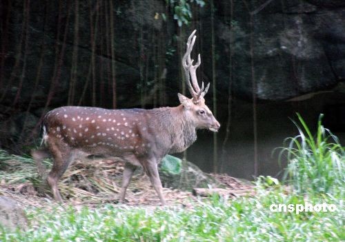 圖為臺(tái)北市立動(dòng)物園內(nèi)圈養(yǎng)的梅花鹿。 中新社發(fā) 黃少華 攝