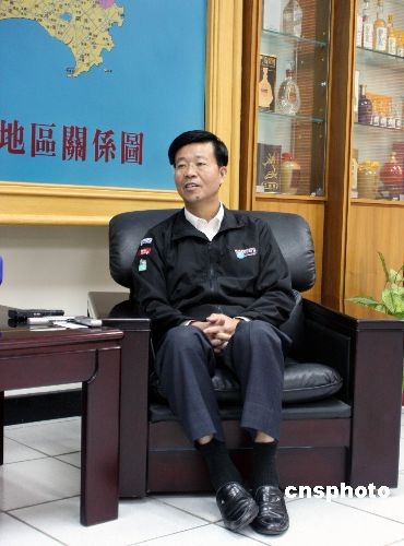 金門縣長李炷烽近日在縣政府接受中新社記者訪問。他表示,金門未來的發展在于觀光;當臺灣本島的觀光客數量已趨穩定,今后經濟增長的來源是向西開放,金門的產業未來在大陸。 中新社發 周兆軍 攝