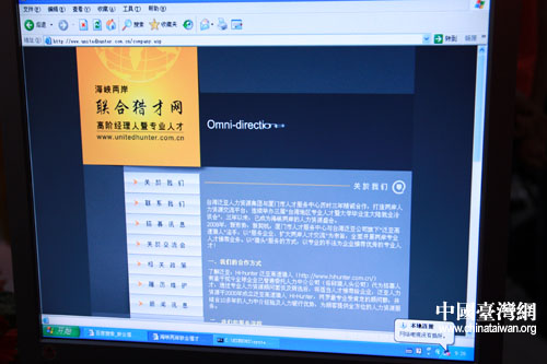 臺灣泛亞人力資源管理顧問公司總監(jiān)曾翊銘向記者介紹了網(wǎng)站的相關(guān)情況,他說“兩岸聯(lián)合獵才網(wǎng)”的目標(biāo)是為兩岸企業(yè)和高階人才搭建常態(tài)化的對接平臺,使人才和企業(yè)能夠各取所需,以加快兩岸人才合作步伐,未來網(wǎng)站將力圖成為大中華區(qū)的高級人才網(wǎng)站。他并且樂觀地表示,未來兩岸關(guān)系更為明朗、更為開放的時(shí)候,大陸人才也可以通過這個(gè)平臺前往臺灣尋求機(jī)會。