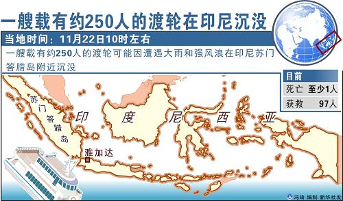 中新社香港十一月二十二日電 雅加達消息:一艘載有二百五十余人的渡輪二十二日在印度尼西亞蘇門答臘島附近海域發(fā)生傾覆。事故可能由當?shù)貝毫犹鞖庖l(fā),目前警方正在全力救援落水人員。