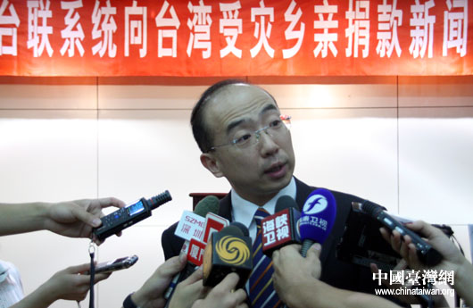 全國臺聯8月25日上午在北京召開新聞發布會,全國政協委員、全國臺聯副會長紀斌介紹全國臺聯系統和大陸臺胞捐款的有關情況。(中國臺灣網 鐘寶華 攝)