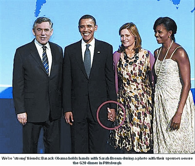 奧巴馬和布朗夫人“有一手”?合影時(shí)竟雙手緊握