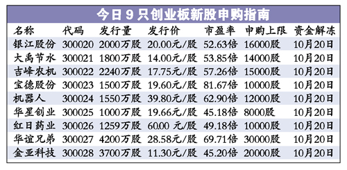 數(shù)據(jù)顯示,今日發(fā)行的這9家公司的平均發(fā)行市盈率為57.5倍,略低于第二批57.19倍的平均市盈率,高于第一批55倍的均值。不過,第三批創(chuàng)業(yè)板新股實際募資規(guī)模將超過第二批。
